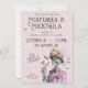 Ce squelette d'inspiration steampunk apporte une touche gothique vintage à Halloween divertissant. Le squelette est habillé d'un costume rose vif, d'un casquette surmonté d'un citrouille, d'une cravate d'arc et d'un cocktail à la main, entouré de chauves-souris et d'accents de cobweb. L'oeuvre allie élégance sombre et détails fantaisistes, ce qui en fait un lieu idéal pour accueillir une soirée sophistiquée "Costumes & Cocktails". Donnez le ton pour une soirée inoubliable avec une invitation éffrayante-chic que les clients aimeront.