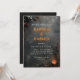 Costumes & Cocktails adulte Halloween invitation fête. Le design est composé d'arrière - plan foncé, de bois, de bougies et de crânes. Correspondance des articles de fête d'Halloween dans notre magasin. Personnalisez avec vos détails.