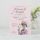 Ce design de squelette élégant apporte une touche gothique vintage à la fête d'Halloween. Le squelette est vêtu d'un costume rose vif avec un chapeau orné d'une citrouille, un nœud papillon et un cocktail à la main, entouré de chauves-souris et d'accents de toiles d'araignée. L'œuvre d'art combine une élégance sombre avec des détails fantaisistes, ce qui la rend parfaite pour organiser une soirée "Costumes & Cocktails" sophistiquée. Définissez le ton pour une soirée inoubliable avec une invitation élégante et effrayante que les invités adoreront.