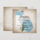 Joli faire-part de mariage carré, dans un style cottage chic, avec un arrière - plan de vieillot. Jolie carte graphique d'un pot de maçon, avec un arc bleu pays, avec une fleur d'hydrangée bleu pays, devant. Personnalisez le texte noir pour votre journée spéciale. Produits mariages correspondants disponibles.