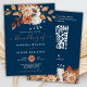 Invitation Couleur d'automne Floral Marine bleu QR Code Maria