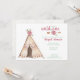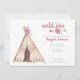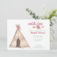 Cette invitation est la meilleure façon d'invitation vos amis et votre famille à la fête d'anniversaire de votre petite fille. Le design comprend des tee-pee, des flèches et des fleurs sauvages à l'aquarelle peinte à la main, avec la couleur de police correspondante pour tous les détails de la planification de votre fête. Le dos est recouvert d'une texture naturelle de grains de bois blanchis à la chaux.