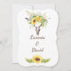 Des Tournesols rustiques à l'aquarelle sur une longue corne Invitations de mariage crânien. Un beau bouquet de tournesols peints à la main au sommet d'un crâne de vache à cornes longues rustiques. Chic et rustique en même temps !