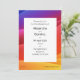 Cette faire-part de mariage moderne présente des couleurs coucher de soleil allant du violet, au travers, du rouge et du jaune dans un style de dégradé vague. Le texte est personnalisable pour votre événement.