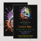 Une oeuvre d'art de graffiti très vivante avec un garçon pré-ado tenant en toute confiance un football américain. Le garçon, à la peau claire, porte des vêtements confectionnés dans un style pop-art audacieux, aux motifs géométriques et aux couleurs contrastées. Une éclaboussure dynamique de peinture violet, vert citron, orange et bleu explose de derrière le garçon, créant un décor chaotique et énergique sur un arrière - plan noir foncé. La composition générale met l'accent sur l'athlétisme du garçon et l'énergie brute de l'art de rue, illuminé par un seul projecteur mettant en évidence le football et l'expression ciblée du garçon.