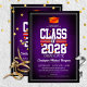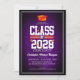 Invitations de fin d'études amusantes dans les couleurs populaires de l'école de violet et d'orange
