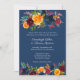 Le design des couleurs vives est une bordure florale multicolore en haut à gauche et en bas avec une base bleu marine et des modèles mariages en blanc.