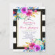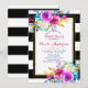 Invitation Couleurs Vives Florales Noires et Rayures Blanches