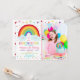 Cette invitation à l'anniversaire de la fille présente un arc-en-ciel coloré et des nuages avec des confettis arc-en-ciel et des accents de parties scintillant faux or.