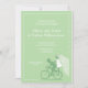 Amusant et moderne, ce faire-part de mariage élégant présente la silhouette du couple garçon et fille le plus mignon sur un vélo ensemble sur un arrière - plan vert poapod. La petite fille porte un beau voile qui coule de la page. Cette faire-part de mariage est parfaite pour votre journée spéciale. Les correspondances sauvegardent les cartes de date, les cartes de réponse, les frais d'affranchissement et plus ainsi que d'autres options de couleur sont disponibles dans notre boutique.