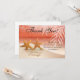 Magnifique carte de remerciement pour un mariage sur la plage pour un beau "Couple étoile de mer". Utilisez le bouton PERSONNALISER ci-dessus pour ajouter votre texte. Contactez-moi pour mettre vos noms dans le sable ! Des invitations de mariage assorties, des cartes "Save the Date", des enveloppes, des protège-canettes, des assiettes en papier, des autocollants, des timbres-poste, des magnets et plus encore sont disponibles ! Si vous avez des questions ou si vous souhaitez d'autres articles avec ce design, veuillez contacter le designer : cheryl@cheryldanielsart.com. Conception de Cheryl Daniels © 2015.