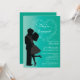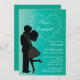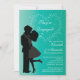 Notre Couple baisant moderne en amour Faire-part Fiançailles ou Invitation Fiançailles est une façon douce de faire savoir à vos proches que vous êtes fiancé! Notre jolie invitation à la fête de fiançailles présente une silhouette élégante d'un couple en noir classique sur un arrière - plan bleu turquoise au coeur étoilé. Parfait pour une invitation à une fête de fiançailles ou un faire-part fiançailles, il suffit de customiser avec vos informations et vous êtes prêts à partir! Les articles correspondants incluent un invitation de douche nuptiale, des cartes de remerciement, des timbres et plus encore dans notre magasin! © Illustrations JW
