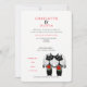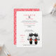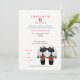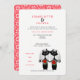 Faire-part de mariage fabuleux design élégant et amusant avec de mignons chats noirs chanceux déguisés en deux mariées lesbiennes; au verso est un motif de dentelle fleurie rouge et blanc, très élégant.