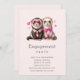 Invitation de la partie d'engagement avec une jolie illustration. Une paire de loutres en vêtements rose. Portant des chemises rayées, l'une portant une cravate et l'autre portant un arc. Entouré de coeurs d'amour.