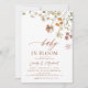 Fêtez l'arrivée d'un nouveau lot de joie avec un beau baby shower thématique Baby in Bloom. Rejoignez-nous pour un après-midi rempli d'amour et de bonheur alors que nous honorons les futurs parents. L'invitation comporte une étonnante terre cuite - texte orange brûlé, accentué par un éventail de fleurs sauvages dynamiques.