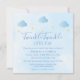 Avec de mignons nuages bleus et des étoiles d'or sur des cordes, sur un arrière - plan bleu doux, ce baby shower, saupoudré ou les couples invitation à la douche est parfait pour tous les petits qui sont en chemin. Ajoutez les détails de votre célébration en blanc pour créer l'invitation parfaite. Conçu par Thisisnotme©