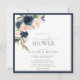 Invitation Couples d'aquarelle florale bleu marine et bleu cl