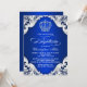 Invitation de baptême bleu royal avec une belle couronne de diamants et un script élégant sur un fond tourbillonnant riche bleu royal et blanc. Cette invitation de baptême à la couronne de prince bleu élégante est facilement personnalisable pour votre événement en ajoutant simplement vos détails dans le style de police et la couleur, et la formulation de votre choix.