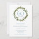 Cette invitation élégante pour le 60e anniversaire de mariage peut être personnalisée avec vos détails spéciaux de noces de diamant. Le verso présente une couronne de verdure assortie encadrant vos dates d'anniversaire en texte blanc élégant sur fond bleu diamant. Conçu par Thisisnotme©
