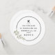 Étiquette autocollante de retour d'adresse personnalisée avec votre monogramme de famille et adresse, avec une couronne de fil moderne et un accent de branche de laurier dessiné à la main et une typographie moderne.