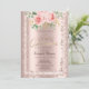 Couronne de paillettes élégante, roses et cadre sur invitation de fête de quinceañera en or rose.