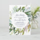 Cette invitation de couronne de diamants de verdure d'été pour faire la fête est parfaite pour un événement élégant de milieu d'été. Le design botanique présente un arrangement luxuriant d'eucalyptus aquarellé peint, de verdure et de feuilles vertes avec de subtils brins de fleurs rose blush. Cette invitation est parfaite pour une fête de fiançailles, une soirée de filles, ou tout événement ou fête.