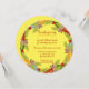 Une invitation de Thanksgiving ronde charmante, cet article présente un fond jaune avec une couronne rouge et dorée avec "Bénédiction de Thanksgiving" au centre en rouge et or. Il y a des modèles sous le design pour insérer vos informations. La police est rouge. Personnalisez facilement la police et la couleur de fond. C'est une façon merveilleuse d'inviter la famille et les amis au dîner de Thanksgiving.