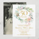 Caractérisée par une délicate guirlande de verdure florale aquarelle, cette jolie invitation d'anniversaire de mariage de 50 ans peut être personnalisée avec vos détails spéciaux. Au verso votre photo de mariage préférée. Conçue par Thisisnotme©