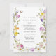 Carton d'invitation au mariage avec une couronne aquarelle de fleurs sauvages printanières. Personnalisez avec vos informations.