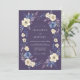 Ce design enchanteur présente un fond violet profond orné d'une couronne de fleurs peintes dans des tons de crème, de bleu et de lavande. Des fleurs délicates et un feuillage luxuriant créent une atmosphère élégante et romantique pour votre jour spécial.