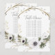 Carte de placement nominative au lieu d'un numéro de table, destinée à être placée sur chaque table avec les noms des invités pour cette table. Personnalisez chaque carte, puis placez-la dans votre panier. Aquarelle peinte à la main et œuvre d'art au papier collé représentant des chatons, des brindilles, du feuillage et des fleurs d'anémone blanches. Droits d'auteur Audrey Jeanne Roberts, tous droits réservés.