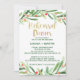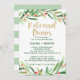 Cette carte d'invitation pour le dîner de répétition de mariage avec une couronne de houx de Noël est parfaite pour une répétition de mariage hivernal. Le design présente une couronne verte aquarelle avec des baies rouges et une police élégante en faux doré scintillant.