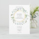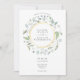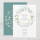 Une couronne de laurier décorative entoure une bordure de feuille d'or fausse contenant les noms des heureux élus. En dessous, vos informations de mariage sont présentées dans un texte élégant classique. Le verso présente les noms du couple marié inscrits dans une couronne de fleurs et de feuille d'or fausse assortie. Conçu par Thisisnotme