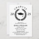 Cartes d'invitation minimalistes pour la fête de remise des diplômes avec des chapeaux de diplômé bleus qui tombent, et un modèle de texte moderne facile à personnaliser. Personnalisez l'invitation à la fête de remise des diplômes en ajoutant le nom du diplômé, le nom de l'école et l'année de remise des diplômes. L'invitation se retourne pour afficher les détails de votre fête de remise des diplômes avec un fond blanc et bleu.
