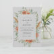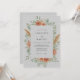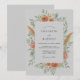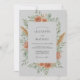 Un charmant design de couronne entoure un panneau central, présentant de délicates fleurs de corail, une verdure vaporeuse et des touches de graminées dorées. L'art inspiré de l'aquarelle évoque une atmosphère douce et romantique avec des tons terreux. Parfait pour une occasion fantaisiste et élégante.