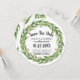 Carte de Save the Date de mariage avec couronne de saule et d'eucalyptus en fleurs aquarelle. Personnalisez la police, la couleur et la taille du texte.