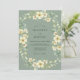 Une tendre couronne de fleurs jaunes douces et de feuilles vertes délicates entoure le centre. Ce design évoque un sentiment d'élégance naturelle et de romance discrète, parfait pour une occasion sereine. La palette de couleurs douces crée une atmosphère apaisante et invitante.