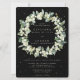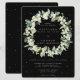 Des mûres de neige peintes à la main et des tiges d'eucalyptus disposées en une belle couronne botanique sur fond noir. Tout le texte est entièrement modifiable, et les points dispersés sur l'avant et l'arrière peuvent être supprimés avant la commande si vous le souhaitez. Veuillez consulter cette collection dans ma boutique pour des invitations avec des options de formulation alternatives, différentes couleurs/formes/tailles et pour des articles coordonnés.