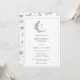 Ce dîner de répétition de mariage élégant et stylé présente de beaux eucalyptus et verdures aquarelles vert sauge et bleu sarcelle. Le verso de l'invitation présente un beau motif qui correspond à l'illustration sur le devant.