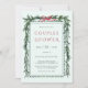 Cette élégante invitation de fête de couples présente une couronne de sapin de Noël aquarelle accentuée d'un ruban rouge charmant.