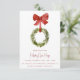 Un minimaliste scandi de noël fêtes de couronne invitation maison ouverte. Cette invitation de fête de noël comporte une couronne verdoyante de noël avec un arc rouge. Tout le texte peut être customisé avec n'importe quel libellé de votre choix.