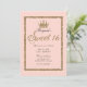 Invitation Couronne de princesse rose pailletée or glitter po