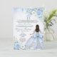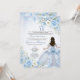 Invitation de fête d'anniversaire florale Couronne dorée Quinceañera 15 Ans Bleu Poussiéreux