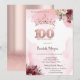 Invitation Couronne de roses pailletées or rose pour 100e ann
