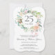 Caractéristique d'une délicate guirlande florale à l'aquarelle, cette invitation chic et botanique pour les 25 ans de mariage peut être personnalisée avec vos informations spéciales de jubilé d'argent. Le verso présente une guirlande florale assortie encadrant vos dates de jubilé de mariage en texte blanc élégant sur fond argent. Conçue par Thisisnotme©