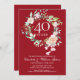 Cette chic invitation botanique pour les 40 ans de mariage peut être personnalisée avec vos informations spéciales d'anniversaire de mariage rubis, avec une délicate couronne florale aquarelle. Le verso présente une couronne florale assortie encadrant vos dates d'anniversaire de mariage en texte blanc élégant sur fond rubis. Conçu par Thisisnotme©