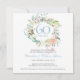 Cette invitation chic et botanique pour les 60/75 ans de mariage peut être personnalisée avec vos informations spéciales de noces de diamant/platine, avec une délicate couronne de roses florales aquarellées. Le verso présente une couronne florale assortie encadrant vos dates d'anniversaire en texte blanc élégant sur fond bleu diamant. Conçu par Thisisnotme©