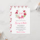 Cette invitation de mariage rustique et élégante présente une couronne aquarelle avec des roses roses et rouges, un ruban et de la verdure. Le texte combine une écriture manuscrite et des polices serif pour un look stylé et moderne. C'est parfait pour un mariage de printemps ou d'été.