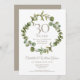 Avec une élégante couronne de verdure forestière, cette invitation chic et botanique pour le 30e anniversaire de mariage peut être personnalisée avec vos informations spéciales de perle. Le verso présente une couronne assortie encadrant vos dates d'anniversaire en texte blanc élégant sur fond perle. Conçu par Thisisnotme©