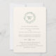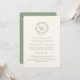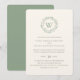 Faire invitation de mariage sur papier vergé élégant avec typographie classique, couronne de verdure à l'aquarelle avec monogramme. Au dos, vert olive.